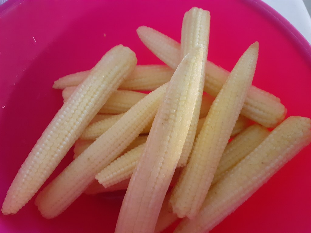 2. Baby corn pieces in juicer with onion, ginger garlic paste, fresh coriander, salt, black pepper and cream