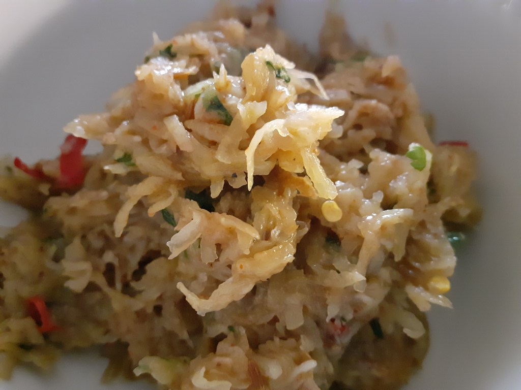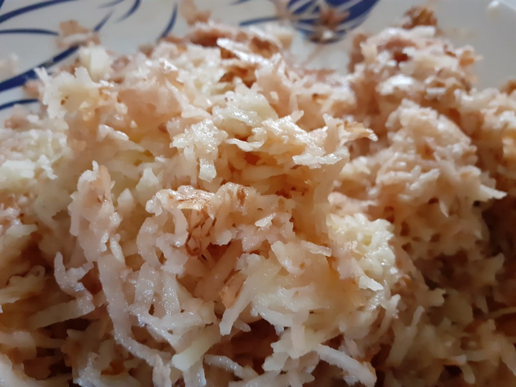 - In non-stick pan, add butter or cooking oil, then shredded potatoes
