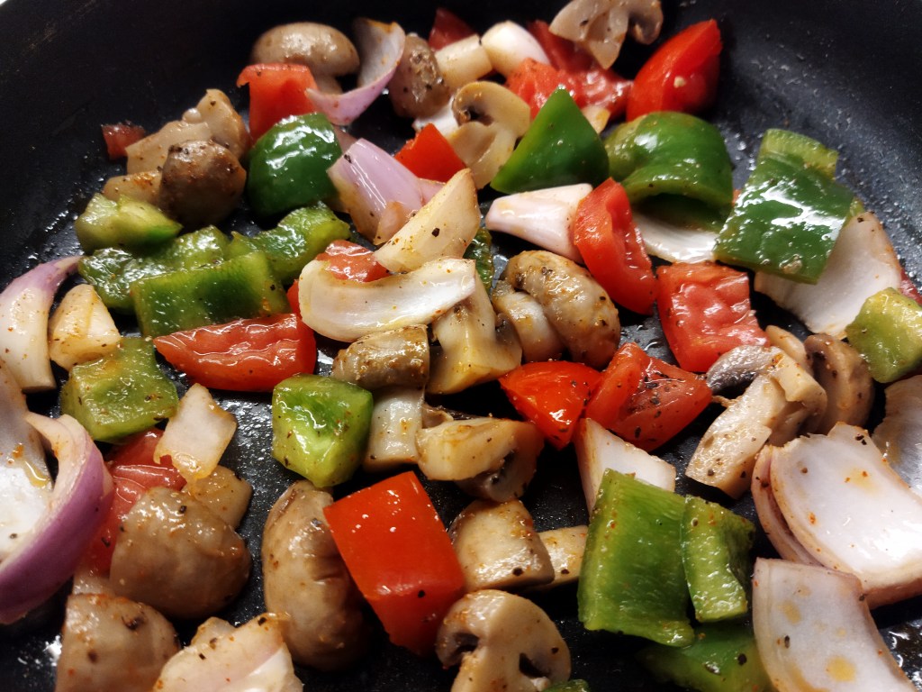 - Dice fresh vegetables: onions, tomatoes, capsicum, mushrooms