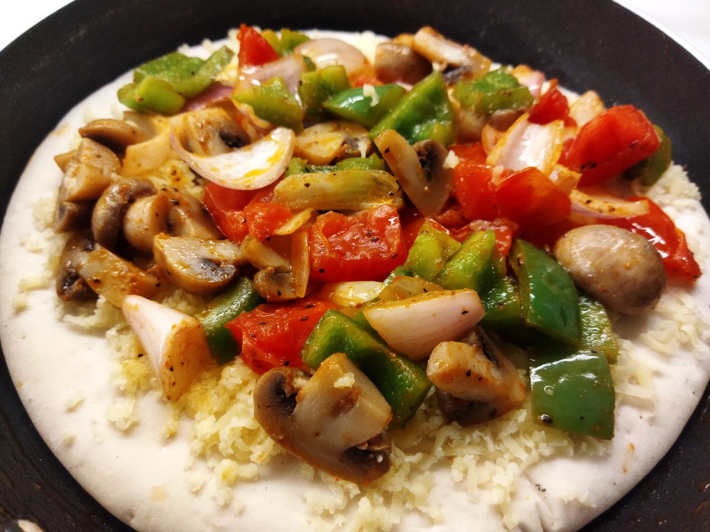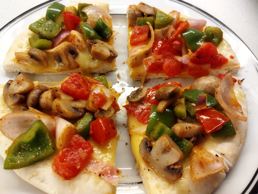 - Top up pizza with vegetables