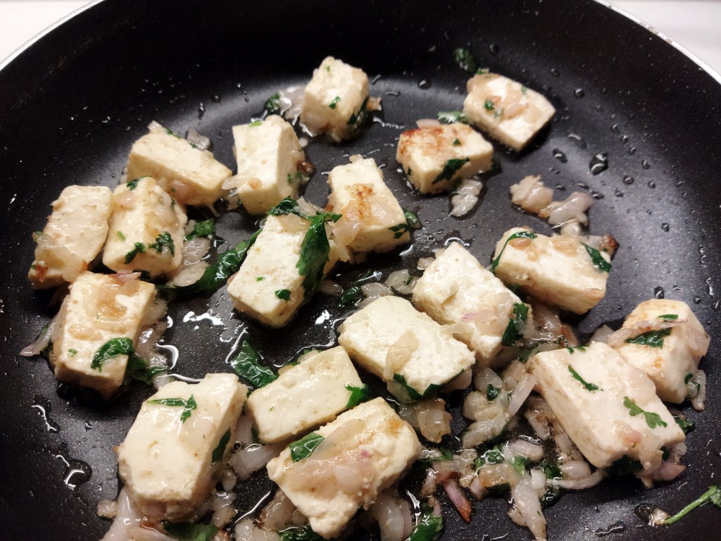 - Fry paneer and onions till golden brown