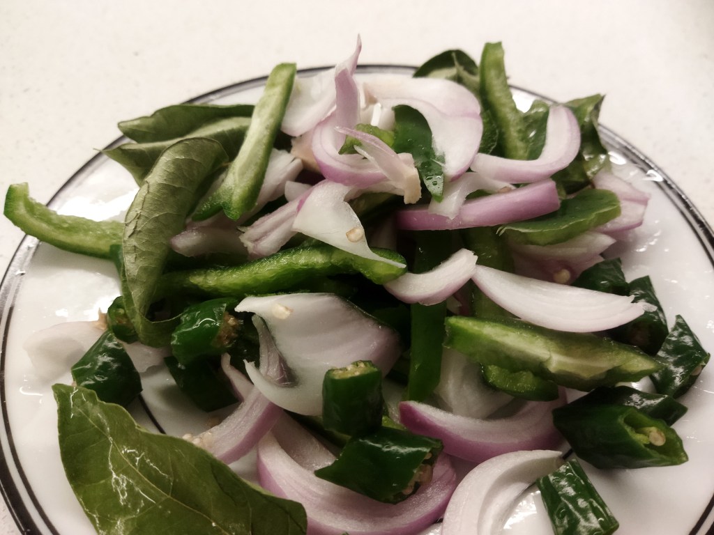 2. Vegetables (onion, capsicum, green chilli and curry leaves)