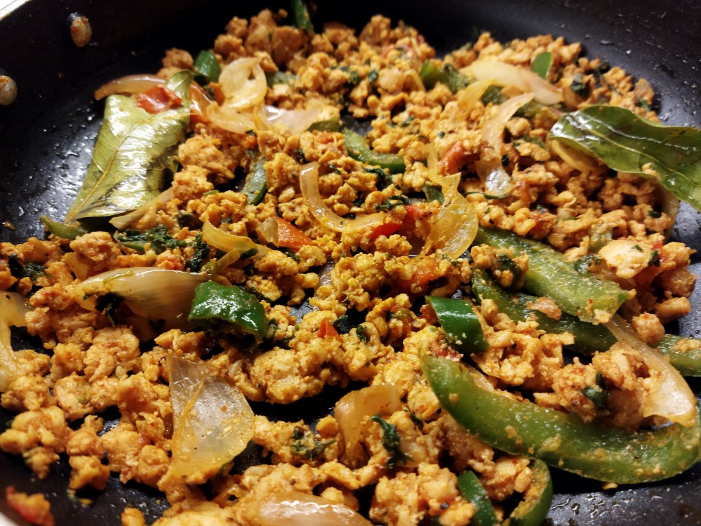 - Add spices: salt, turmeric, red chilli powder, black pepper, coriander powder