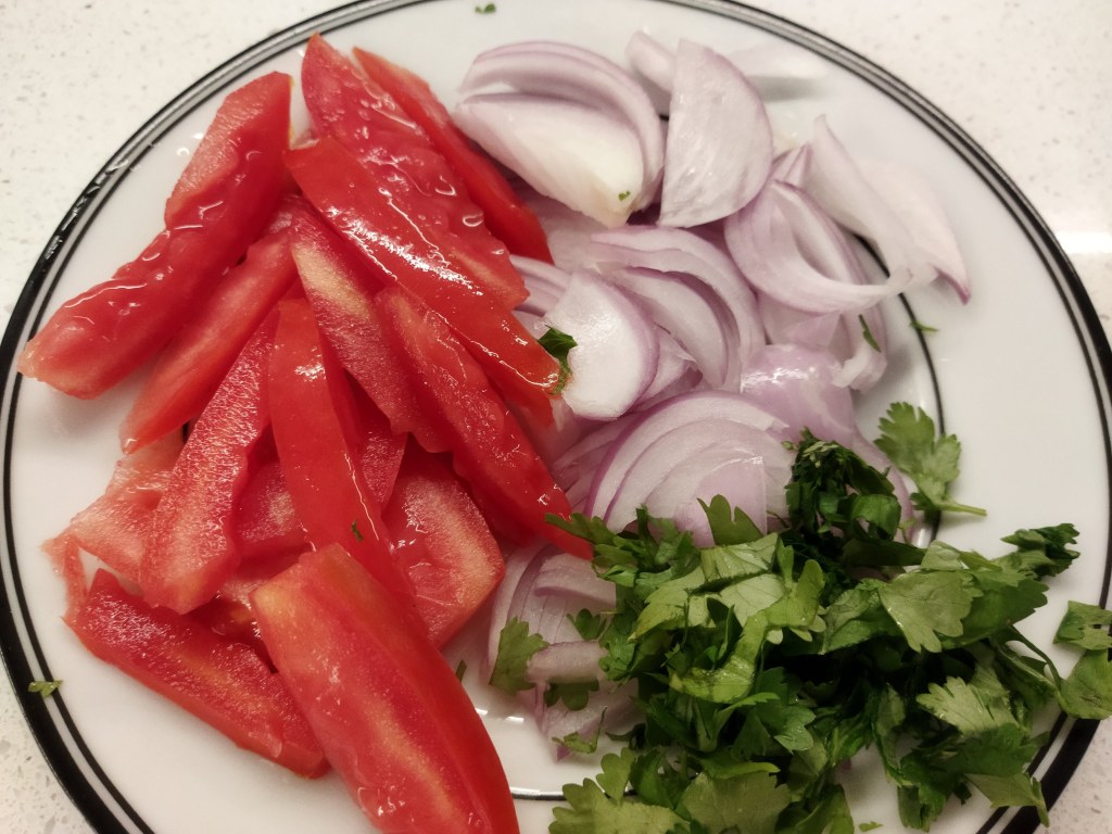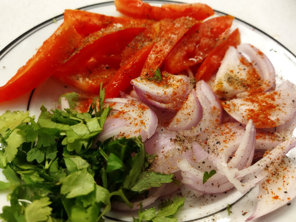 - Sprinkle with salt, black pepper, red chilli powder and freshly chopped coriander to make salad