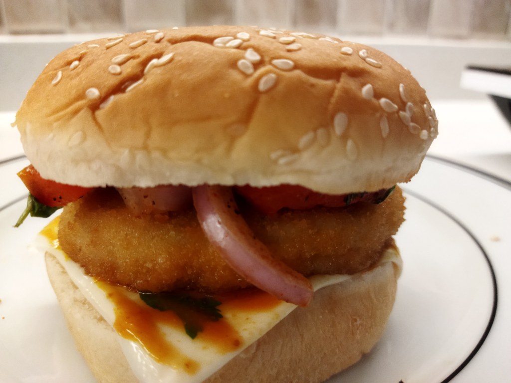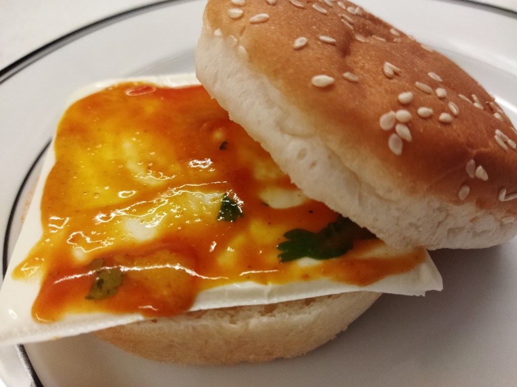 5. Preparing Burger Bun with a slice of Cheese, Tomato Ketchup and Mustard Sauce
