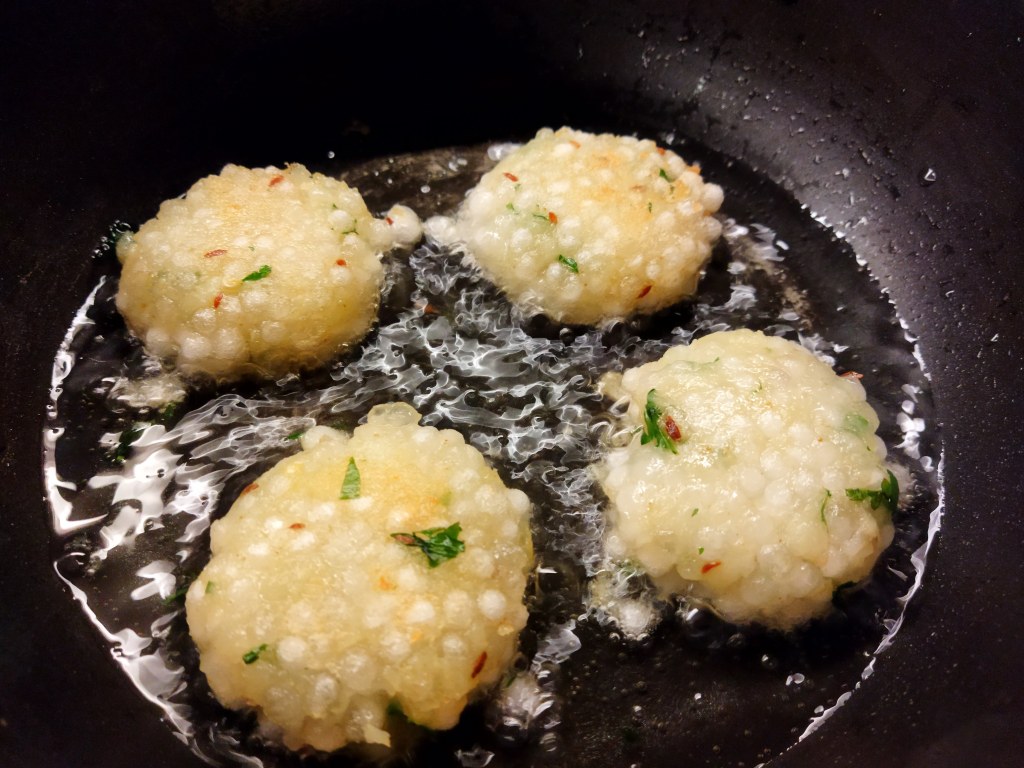 - Mould sabudana mixture into round disc-shaped balls