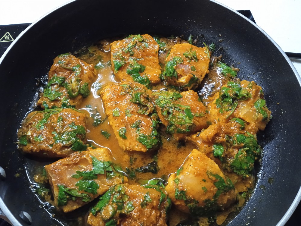 - Cover with lid and cook fish for 5-10 mins on low flame