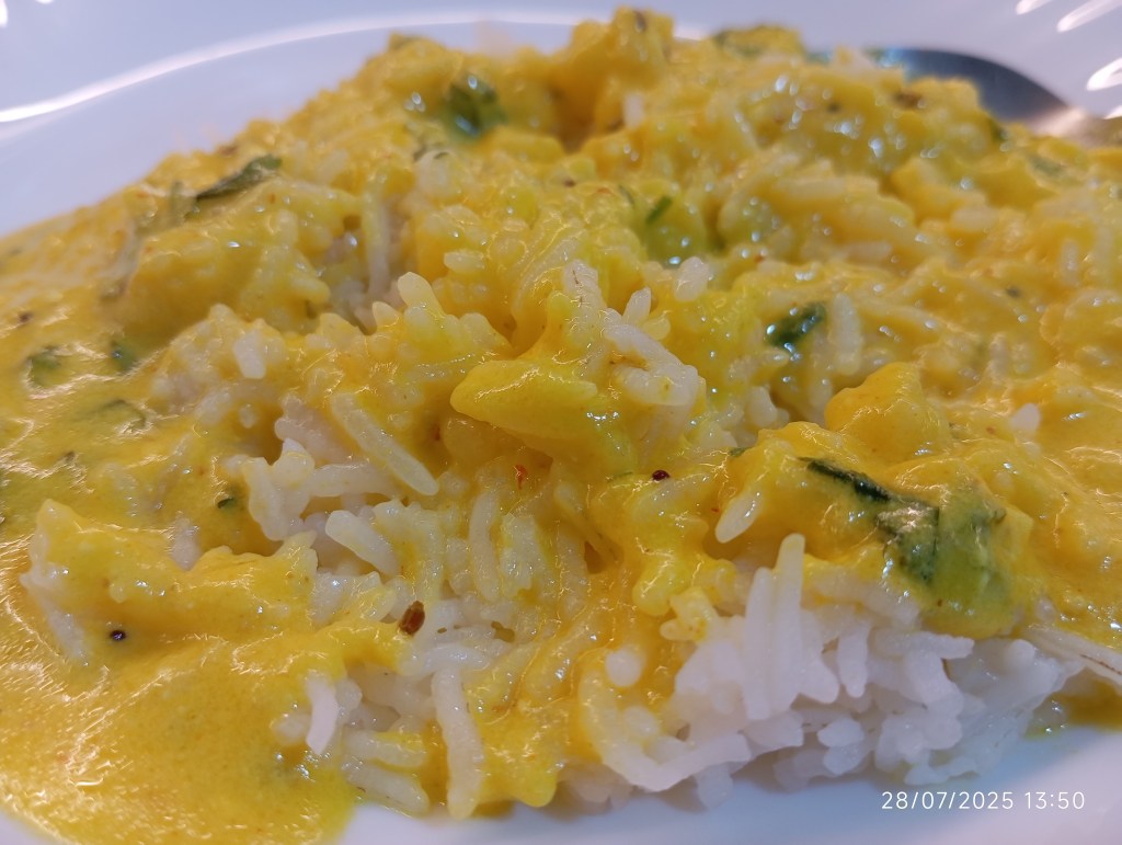 Step 10: Stir well and heat for 1-2 mins till kadhi starts to boil