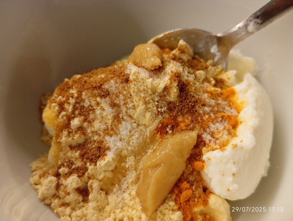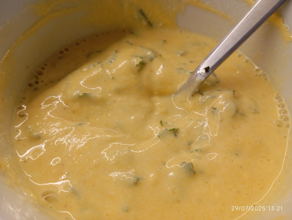 Step 3: Add 2-3 spoons of gram flour (approx 1/3rd or 1/4th proportion of curd)